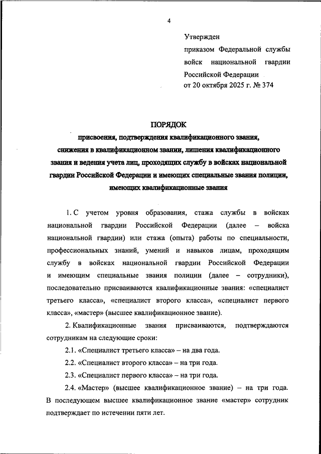 ПРИКАЗ Росгвардии от 20.10.2025 N 374