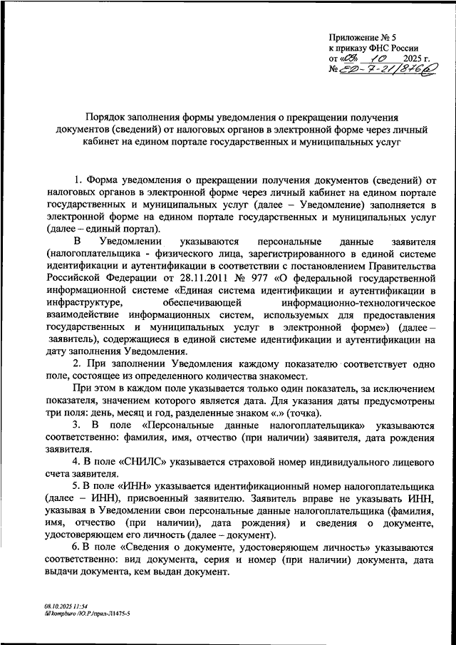 ПРИКАЗ ФНС РФ от 09.10.2025 N ЕД-7-21/876@