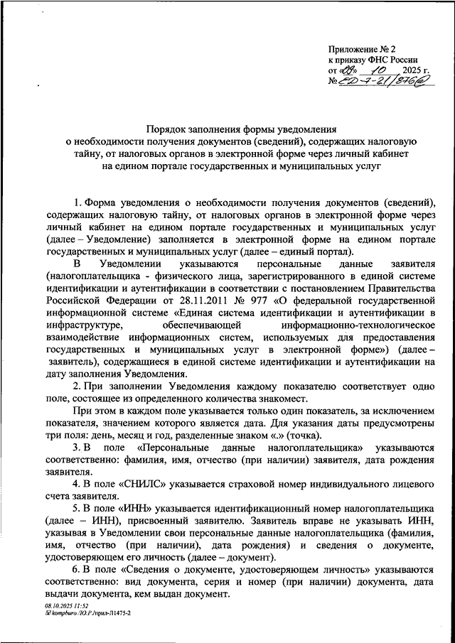 ПРИКАЗ ФНС РФ от 09.10.2025 N ЕД-7-21/876@