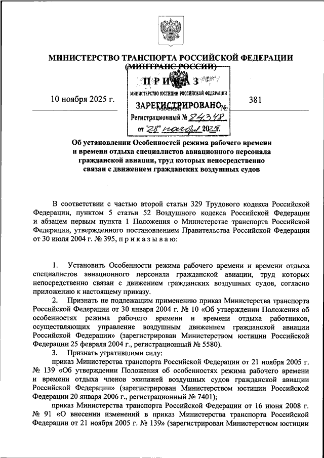 ПРИКАЗ Минтранса РФ от 10.11.2025 N 381