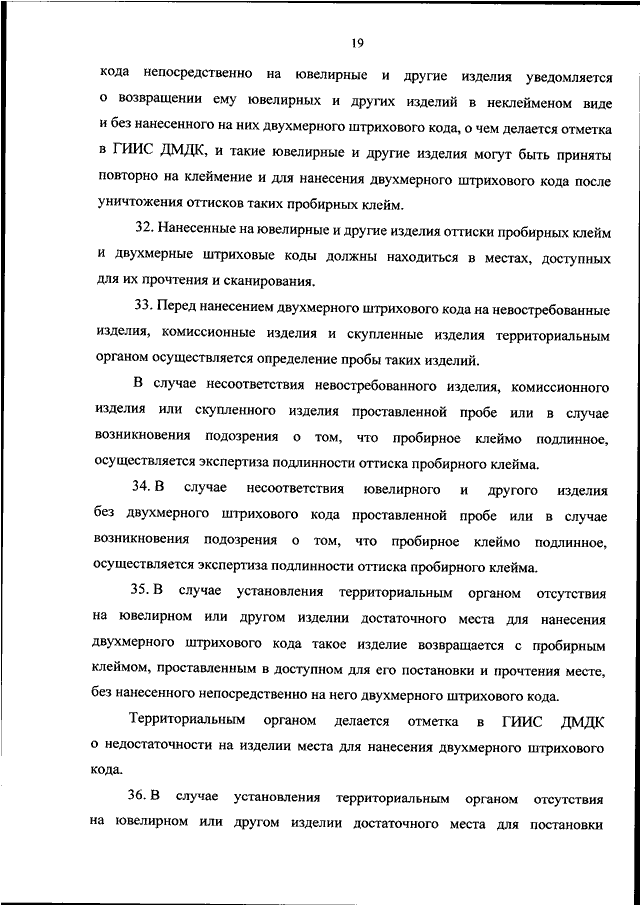 "ОБ УТВЕРЖДЕНИИ ИНСТРУКЦИИ ПО ОПРОБОВАНИЮ, АНАЛИЗУ, КЛЕЙМЕНИЮ ЮВЕЛИРНЫХ И ДРУГИХ ИЗДЕЛИЙ ИЗ ДРАГОЦЕННЫХ МЕТАЛЛОВ, НАНЕСЕНИЮ ДВУХМЕРНОГО ШТРИХОВОГО КОДА НЕПОСРЕДСТВЕННО НА ЮВЕЛИРНЫЕ И ДРУГИЕ ИЗДЕЛИЯ ИЗ ДРАГОЦЕННЫХ МЕТАЛЛОВ, ПРИЕМУ, ХРАНЕНИЮ, ВЫДАЧЕ ЮВЕЛИРНЫХ И ДРУГИХ ИЗДЕЛИЙ ИЗ ДРАГОЦЕННЫХ МЕТАЛЛОВ, АНАЛИЗУ МАТЕРИАЛОВ, СОДЕРЖАЩИХ ДРАГОЦЕННЫЕ МЕТАЛЛЫ, ИЗГОТОВЛЕНИЮ ПРОБИРНЫХ РЕАКТИВОВ И ФОРМ КВИТАНЦИЙ"