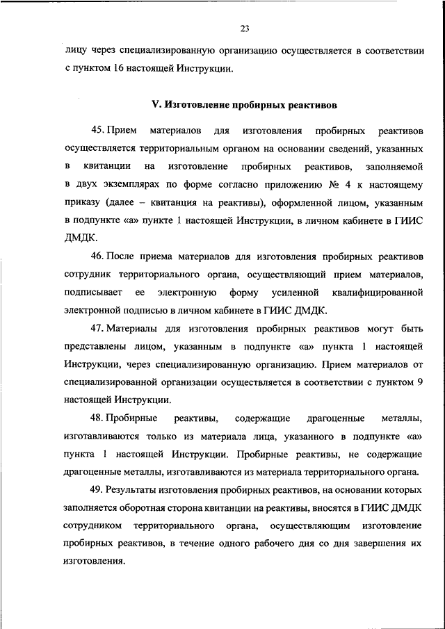 "ОБ УТВЕРЖДЕНИИ ИНСТРУКЦИИ ПО ОПРОБОВАНИЮ, АНАЛИЗУ, КЛЕЙМЕНИЮ ЮВЕЛИРНЫХ И ДРУГИХ ИЗДЕЛИЙ ИЗ ДРАГОЦЕННЫХ МЕТАЛЛОВ, НАНЕСЕНИЮ ДВУХМЕРНОГО ШТРИХОВОГО КОДА НЕПОСРЕДСТВЕННО НА ЮВЕЛИРНЫЕ И ДРУГИЕ ИЗДЕЛИЯ ИЗ ДРАГОЦЕННЫХ МЕТАЛЛОВ, ПРИЕМУ, ХРАНЕНИЮ, ВЫДАЧЕ ЮВЕЛИРНЫХ И ДРУГИХ ИЗДЕЛИЙ ИЗ ДРАГОЦЕННЫХ МЕТАЛЛОВ, АНАЛИЗУ МАТЕРИАЛОВ, СОДЕРЖАЩИХ ДРАГОЦЕННЫЕ МЕТАЛЛЫ, ИЗГОТОВЛЕНИЮ ПРОБИРНЫХ РЕАКТИВОВ И ФОРМ КВИТАНЦИЙ"