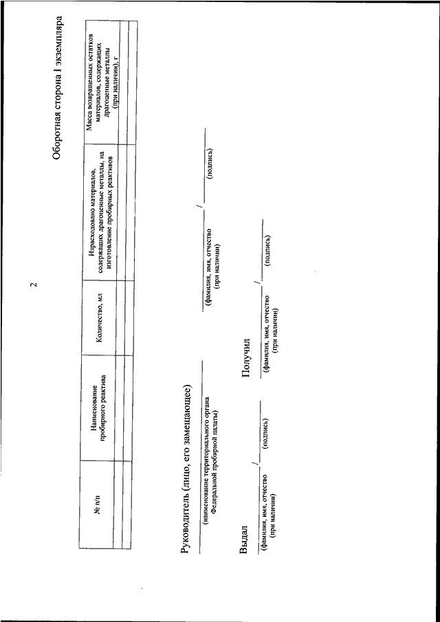 "ОБ УТВЕРЖДЕНИИ ИНСТРУКЦИИ ПО ОПРОБОВАНИЮ, АНАЛИЗУ, КЛЕЙМЕНИЮ ЮВЕЛИРНЫХ И ДРУГИХ ИЗДЕЛИЙ ИЗ ДРАГОЦЕННЫХ МЕТАЛЛОВ, НАНЕСЕНИЮ ДВУХМЕРНОГО ШТРИХОВОГО КОДА НЕПОСРЕДСТВЕННО НА ЮВЕЛИРНЫЕ И ДРУГИЕ ИЗДЕЛИЯ ИЗ ДРАГОЦЕННЫХ МЕТАЛЛОВ, ПРИЕМУ, ХРАНЕНИЮ, ВЫДАЧЕ ЮВЕЛИРНЫХ И ДРУГИХ ИЗДЕЛИЙ ИЗ ДРАГОЦЕННЫХ МЕТАЛЛОВ, АНАЛИЗУ МАТЕРИАЛОВ, СОДЕРЖАЩИХ ДРАГОЦЕННЫЕ МЕТАЛЛЫ, ИЗГОТОВЛЕНИЮ ПРОБИРНЫХ РЕАКТИВОВ И ФОРМ КВИТАНЦИЙ"