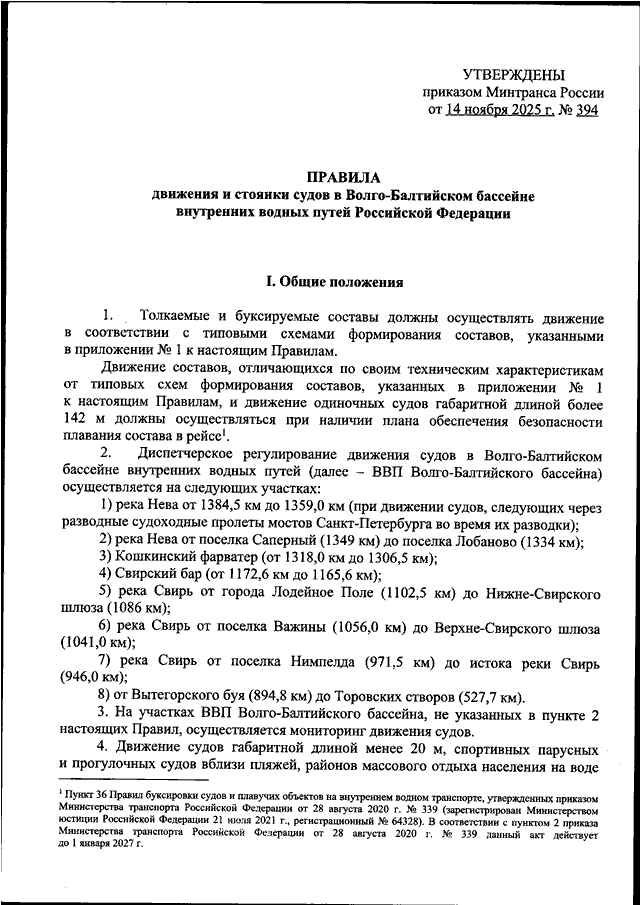 ПРИКАЗ Минтранса РФ от 14.11.2025 N 394