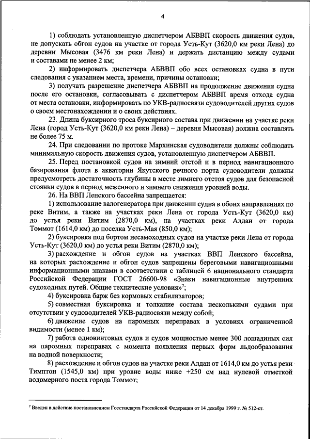 "ОБ УТВЕРЖДЕНИИ ПРАВИЛ ДВИЖЕНИЯ И СТОЯНКИ СУДОВ В ЛЕНСКОМ БАССЕЙНЕ ВНУТРЕННИХ ВОДНЫХ ПУТЕЙ РОССИЙСКОЙ ФЕДЕРАЦИИ"