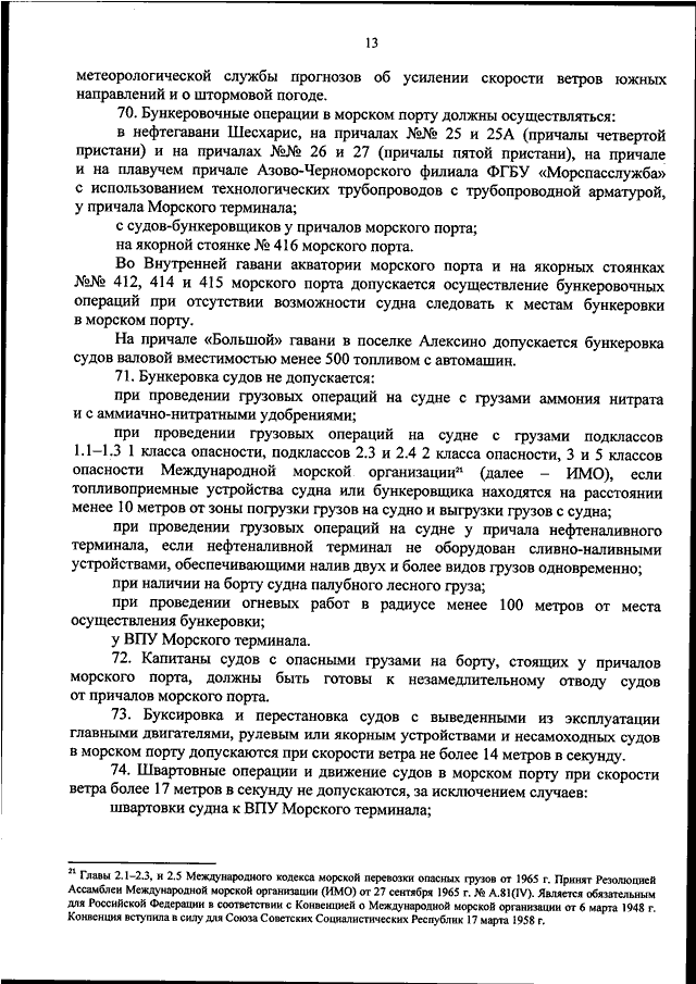 "ОБ УТВЕРЖДЕНИИ ОБЯЗАТЕЛЬНЫХ ПОСТАНОВЛЕНИЙ В МОРСКОМ ПОРТУ НОВОРОССИЙСК"