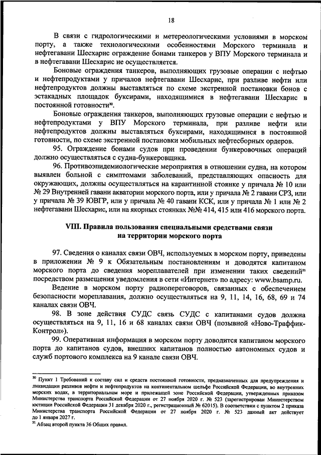 "ОБ УТВЕРЖДЕНИИ ОБЯЗАТЕЛЬНЫХ ПОСТАНОВЛЕНИЙ В МОРСКОМ ПОРТУ НОВОРОССИЙСК"