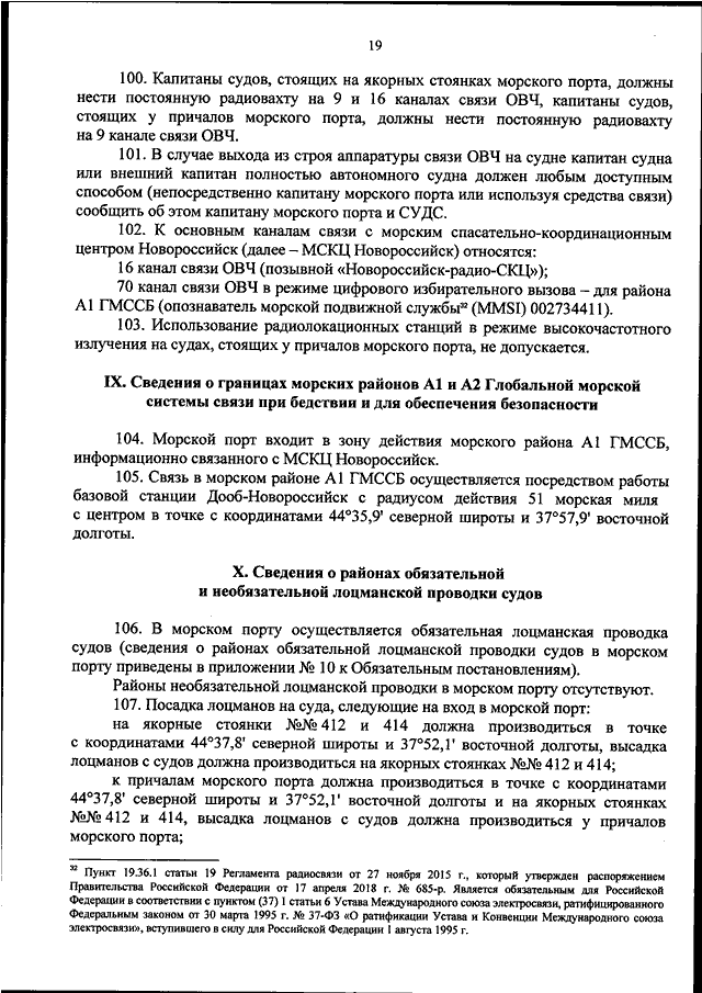 "ОБ УТВЕРЖДЕНИИ ОБЯЗАТЕЛЬНЫХ ПОСТАНОВЛЕНИЙ В МОРСКОМ ПОРТУ НОВОРОССИЙСК"