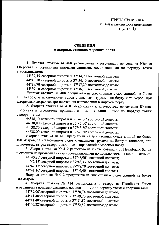 "ОБ УТВЕРЖДЕНИИ ОБЯЗАТЕЛЬНЫХ ПОСТАНОВЛЕНИЙ В МОРСКОМ ПОРТУ НОВОРОССИЙСК"