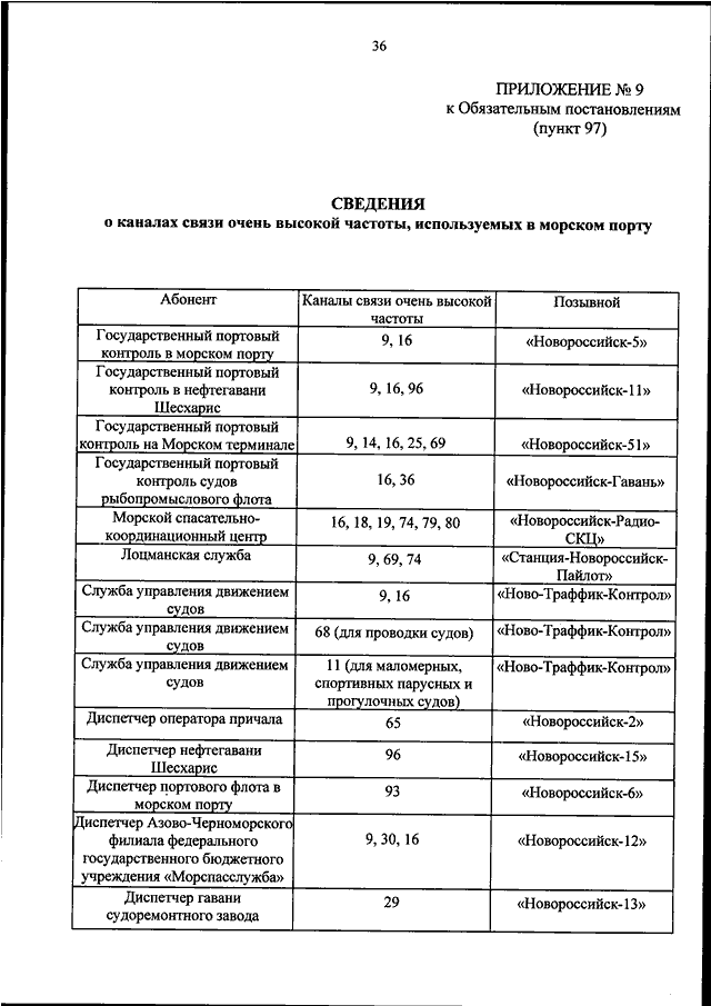 "ОБ УТВЕРЖДЕНИИ ОБЯЗАТЕЛЬНЫХ ПОСТАНОВЛЕНИЙ В МОРСКОМ ПОРТУ НОВОРОССИЙСК"