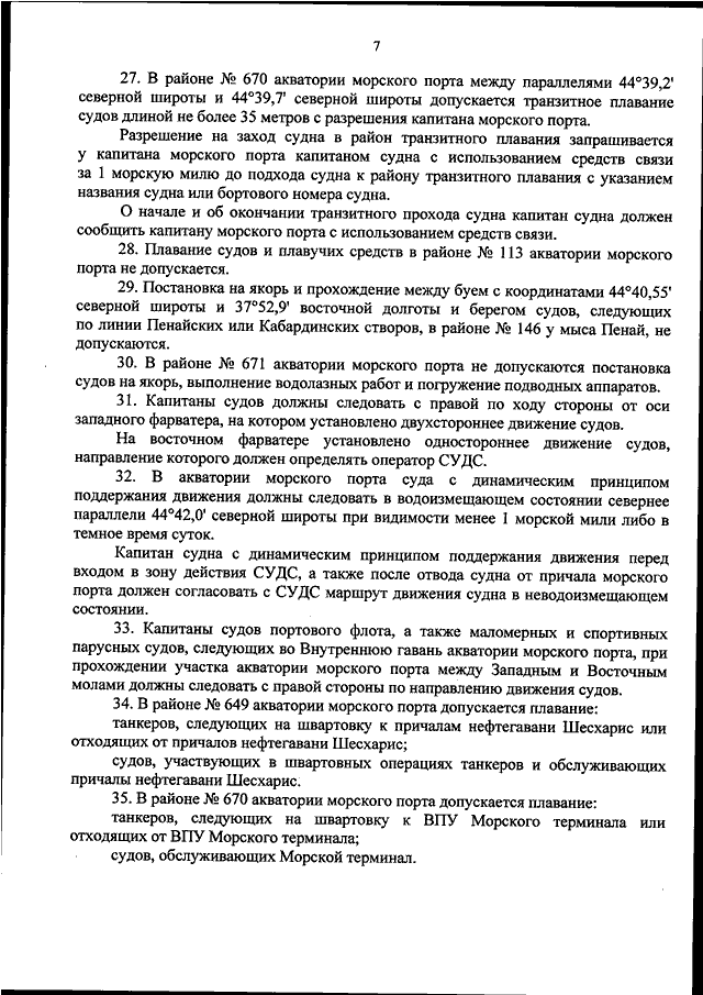 "ОБ УТВЕРЖДЕНИИ ОБЯЗАТЕЛЬНЫХ ПОСТАНОВЛЕНИЙ В МОРСКОМ ПОРТУ НОВОРОССИЙСК"