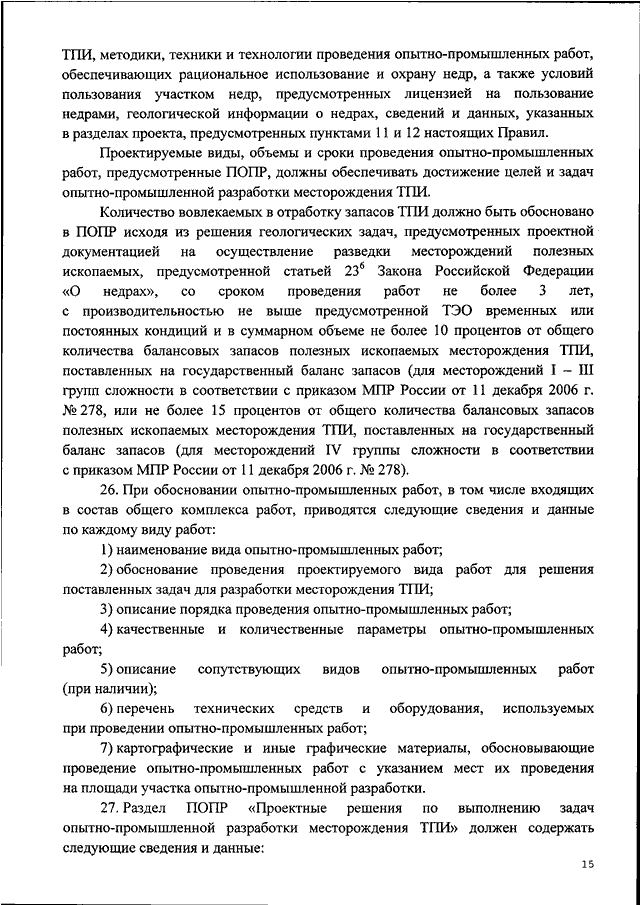 "ОБ УТВЕРЖДЕНИИ ПРАВИЛ ПОДГОТОВКИ ТЕХНИЧЕСКИХ ПРОЕКТОВ РАЗРАБОТКИ МЕСТОРОЖДЕНИЙ ТВЕРДЫХ ПОЛЕЗНЫХ ИСКОПАЕМЫХ"