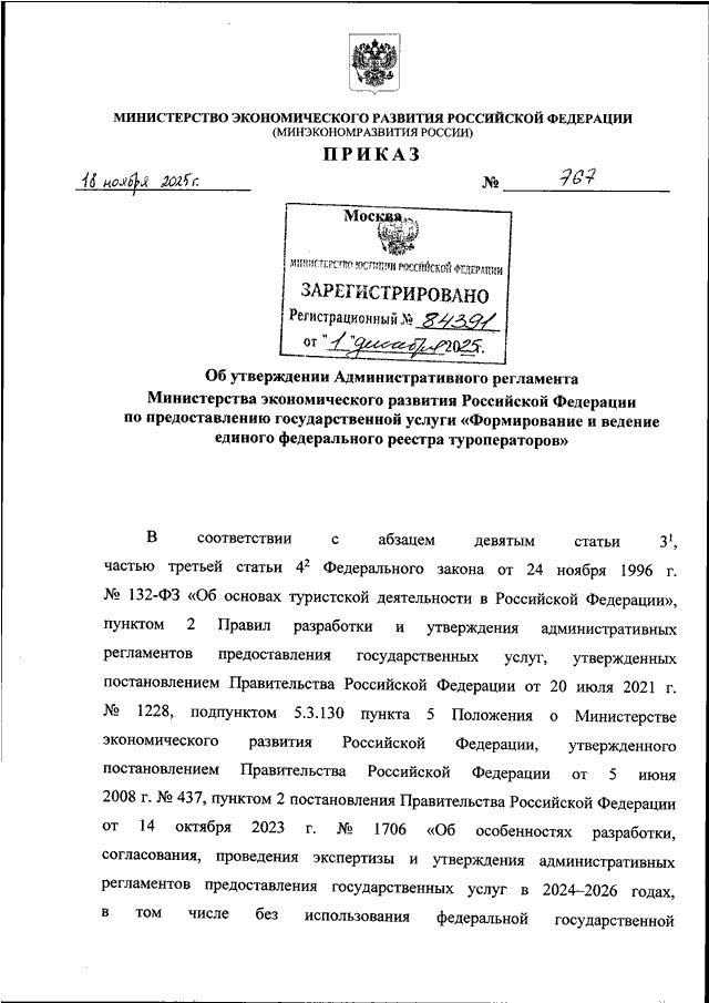 ПРИКАЗ Минэкономразвития РФ от 18.11.2025 N 767