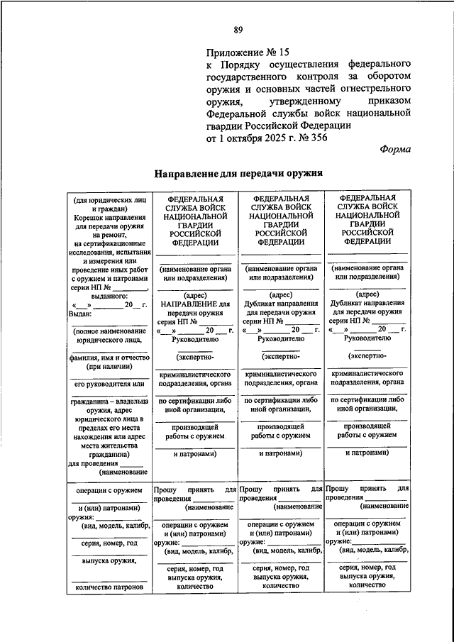 ПРИКАЗ Росгвардии от 01.10.2025 N 356