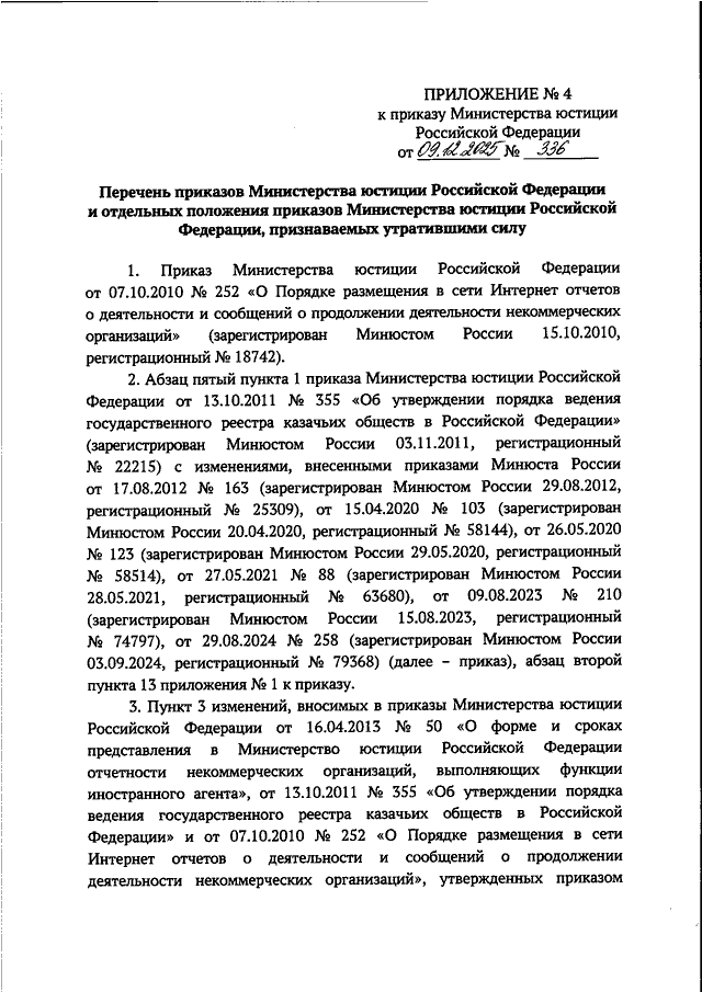 ПРИКАЗ Минюста РФ от 09.12.2025 N 336