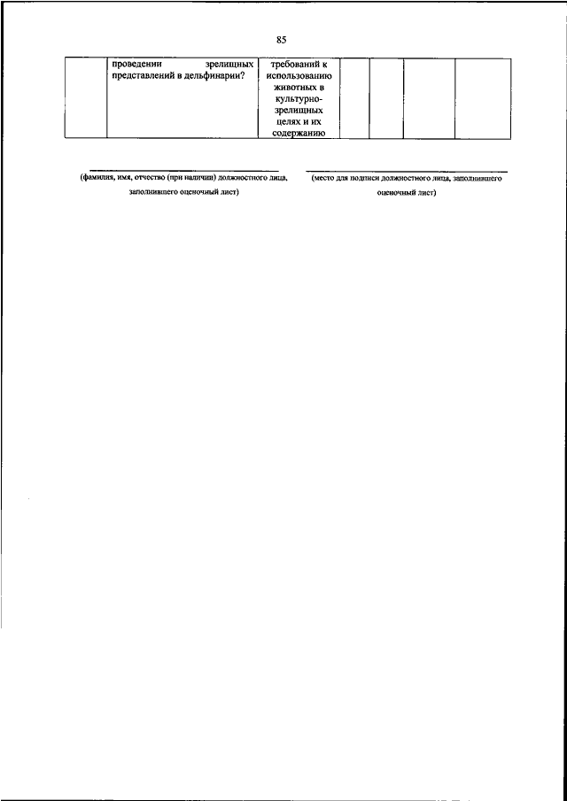 "ОБ УТВЕРЖДЕНИИ ФОРМЫ ОЦЕНОЧНОГО ЛИСТА, В СООТВЕТСТВИИ С КОТОРЫМ ФЕДЕРАЛЬНОЙ СЛУЖБОЙ ПО ВЕТЕРИНАРНОМУ И ФИТОСАНИТАРНОМУ НАДЗОРУ (ЕЕ ТЕРРИТОРИАЛЬНЫМИ ОРГАНАМИ) ПРОВОДИТСЯ ОЦЕНКА СООТВЕТСТВИЯ СОИСКАТЕЛЯ ЛИЦЕНЗИИ ИЛИ ЛИЦЕНЗИАТА ЛИЦЕНЗИОННЫМ ТРЕБОВАНИЯМ, ПРЕДЪЯВЛЯЕМЫМ ПРИ ОСУЩЕСТВЛЕНИИ ДЕЯТЕЛЬНОСТИ ПО СОДЕРЖАНИЮ И ИСПОЛЬЗОВАНИЮ ЖИВОТНЫХ В ЗООПАРКАХ, ЗООСАДАХ, ЦИРКАХ, ЗООТЕАТРАХ, ДЕЛЬФИНАРИЯХ И ОКЕАНАРИУМАХ"