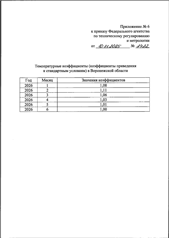 "ОБ УТВЕРЖДЕНИИ ТЕМПЕРАТУРНЫХ КОЭФФИЦИЕНТОВ (КОЭФФИЦИЕНТОВ ПРИВЕДЕНИЯ К СТАНДАРТНЫМ УСЛОВИЯМ) НА ПЕРВОЕ ПОЛУГОДИЕ 2026 ГОДА"