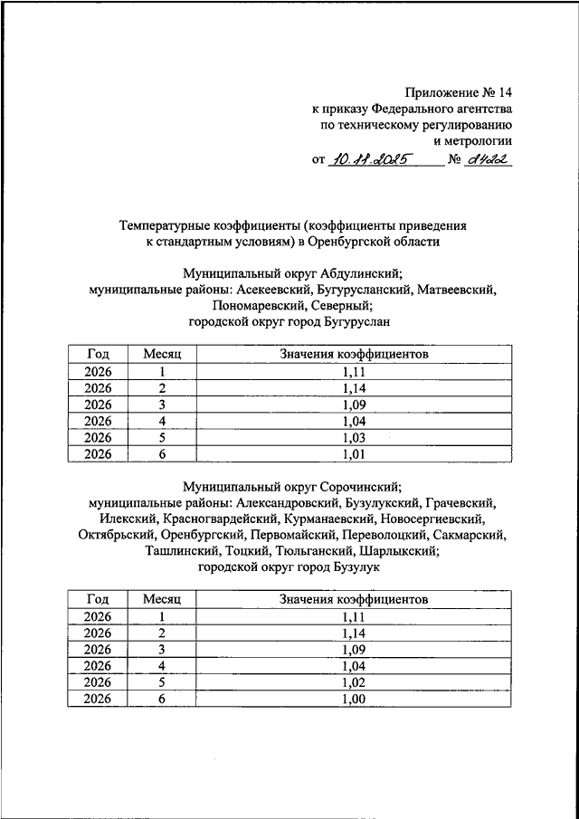 "ОБ УТВЕРЖДЕНИИ ТЕМПЕРАТУРНЫХ КОЭФФИЦИЕНТОВ (КОЭФФИЦИЕНТОВ ПРИВЕДЕНИЯ К СТАНДАРТНЫМ УСЛОВИЯМ) НА ПЕРВОЕ ПОЛУГОДИЕ 2026 ГОДА"