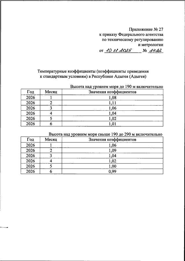 "ОБ УТВЕРЖДЕНИИ ТЕМПЕРАТУРНЫХ КОЭФФИЦИЕНТОВ (КОЭФФИЦИЕНТОВ ПРИВЕДЕНИЯ К СТАНДАРТНЫМ УСЛОВИЯМ) НА ПЕРВОЕ ПОЛУГОДИЕ 2026 ГОДА"