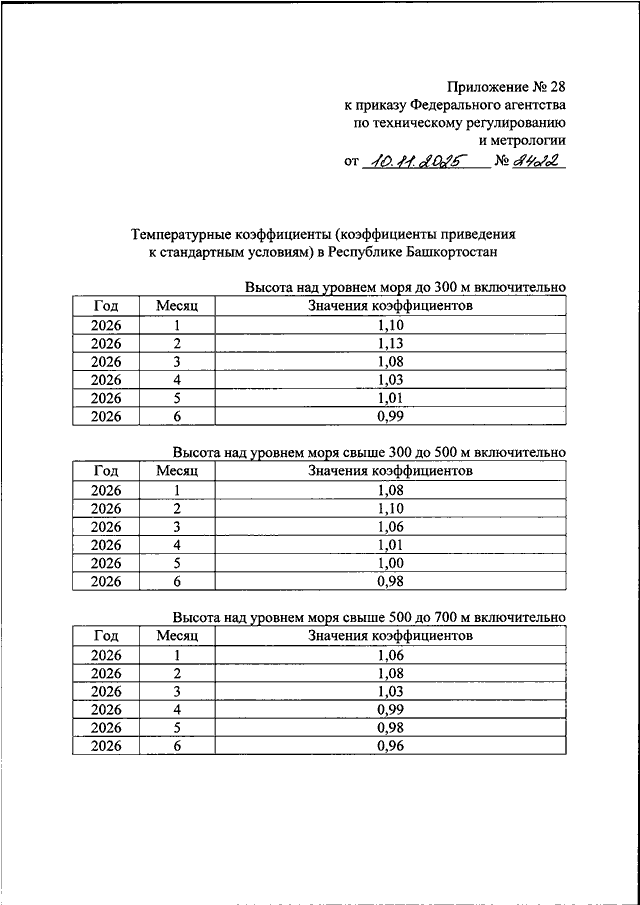 "ОБ УТВЕРЖДЕНИИ ТЕМПЕРАТУРНЫХ КОЭФФИЦИЕНТОВ (КОЭФФИЦИЕНТОВ ПРИВЕДЕНИЯ К СТАНДАРТНЫМ УСЛОВИЯМ) НА ПЕРВОЕ ПОЛУГОДИЕ 2026 ГОДА"