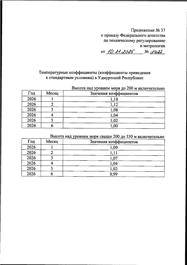 "ОБ УТВЕРЖДЕНИИ ТЕМПЕРАТУРНЫХ КОЭФФИЦИЕНТОВ (КОЭФФИЦИЕНТОВ ПРИВЕДЕНИЯ К СТАНДАРТНЫМ УСЛОВИЯМ) НА ПЕРВОЕ ПОЛУГОДИЕ 2026 ГОДА"