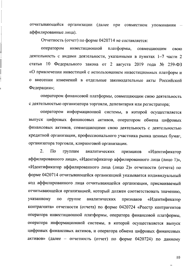 "О ПОРЯДКЕ И СРОКАХ СОСТАВЛЕНИЯ И ПРЕДСТАВЛЕНИЯ (ПРЕДОСТАВЛЕНИЯ) В БАНК РОССИИ ОТЧЕТОВ ОПЕРАТОРОВ ИНВЕСТИЦИОННЫХ ПЛАТФОРМ, ОТЧЕТНОСТИ ОПЕРАТОРОВ ФИНАНСОВЫХ ПЛАТФОРМ, ОПЕРАТОРОВ ИНФОРМАЦИОННЫХ СИСТЕМ, В КОТОРЫХ ОСУЩЕСТВЛЯЕТСЯ ВЫПУСК ЦИФРОВЫХ ФИНАНСОВЫХ АКТИВОВ, И ОПЕРАТОРОВ ОБМЕНА ЦИФРОВЫХ ФИНАНСОВЫХ АКТИВОВ, ФОРМЕ ОТЧЕТОВ ОПЕРАТОРОВ ИНВЕСТИЦИОННЫХ ПЛАТФОРМ И СОСТАВЕ ВКЛЮЧАЕМЫХ В НИХ СВЕДЕНИЙ, СОСТАВЕ И ФОРМАХ ОТЧЕТНОСТИ ОПЕРАТОРОВ ФИНАНСОВЫХ ПЛАТФОРМ, А ТАКЖЕ О ПОРЯДКЕ СООБЩЕНИЯ ОПЕРАТОРАМИ ИНВЕСТИЦИОННЫХ ПЛАТФОРМ, ОПЕРАТОРАМИ ФИНАНСОВЫХ ПЛАТФОРМ, ОПЕРАТОРАМИ ИНФОРМАЦИОННЫХ СИСТЕМ, В КОТОРЫХ ОСУЩЕСТВЛЯЕТСЯ ВЫПУСК ЦИФРОВЫХ ФИНАНСОВЫХ АКТИВОВ, ОПЕРАТОРАМИ ОБМЕНА ЦИФРОВЫХ ФИНАНСОВЫХ АКТИВОВ БАНКУ РОССИИ ИНФОРМАЦИИ О ЛИЦАХ, КОТОРЫМ ПОРУЧЕНО ПРОВЕДЕНИЕ ИДЕНТИФИКАЦИИ, УПРОЩЕННОЙ ИДЕНТИФИКАЦИИ, ОБНОВЛЕНИЕ ИНФОРМАЦИИ О КЛИЕНТАХ, ПРЕДСТАВИТЕЛЯХ КЛИЕНТОВ, ВЫГОДОПРЕОБРЕТАТЕЛЯХ И БЕНЕФИЦИАРНЫХ ВЛАДЕЛЬЦАХ"