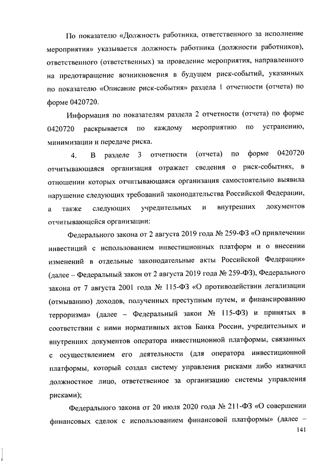 "О ПОРЯДКЕ И СРОКАХ СОСТАВЛЕНИЯ И ПРЕДСТАВЛЕНИЯ (ПРЕДОСТАВЛЕНИЯ) В БАНК РОССИИ ОТЧЕТОВ ОПЕРАТОРОВ ИНВЕСТИЦИОННЫХ ПЛАТФОРМ, ОТЧЕТНОСТИ ОПЕРАТОРОВ ФИНАНСОВЫХ ПЛАТФОРМ, ОПЕРАТОРОВ ИНФОРМАЦИОННЫХ СИСТЕМ, В КОТОРЫХ ОСУЩЕСТВЛЯЕТСЯ ВЫПУСК ЦИФРОВЫХ ФИНАНСОВЫХ АКТИВОВ, И ОПЕРАТОРОВ ОБМЕНА ЦИФРОВЫХ ФИНАНСОВЫХ АКТИВОВ, ФОРМЕ ОТЧЕТОВ ОПЕРАТОРОВ ИНВЕСТИЦИОННЫХ ПЛАТФОРМ И СОСТАВЕ ВКЛЮЧАЕМЫХ В НИХ СВЕДЕНИЙ, СОСТАВЕ И ФОРМАХ ОТЧЕТНОСТИ ОПЕРАТОРОВ ФИНАНСОВЫХ ПЛАТФОРМ, А ТАКЖЕ О ПОРЯДКЕ СООБЩЕНИЯ ОПЕРАТОРАМИ ИНВЕСТИЦИОННЫХ ПЛАТФОРМ, ОПЕРАТОРАМИ ФИНАНСОВЫХ ПЛАТФОРМ, ОПЕРАТОРАМИ ИНФОРМАЦИОННЫХ СИСТЕМ, В КОТОРЫХ ОСУЩЕСТВЛЯЕТСЯ ВЫПУСК ЦИФРОВЫХ ФИНАНСОВЫХ АКТИВОВ, ОПЕРАТОРАМИ ОБМЕНА ЦИФРОВЫХ ФИНАНСОВЫХ АКТИВОВ БАНКУ РОССИИ ИНФОРМАЦИИ О ЛИЦАХ, КОТОРЫМ ПОРУЧЕНО ПРОВЕДЕНИЕ ИДЕНТИФИКАЦИИ, УПРОЩЕННОЙ ИДЕНТИФИКАЦИИ, ОБНОВЛЕНИЕ ИНФОРМАЦИИ О КЛИЕНТАХ, ПРЕДСТАВИТЕЛЯХ КЛИЕНТОВ, ВЫГОДОПРЕОБРЕТАТЕЛЯХ И БЕНЕФИЦИАРНЫХ ВЛАДЕЛЬЦАХ"