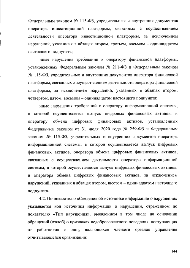 "О ПОРЯДКЕ И СРОКАХ СОСТАВЛЕНИЯ И ПРЕДСТАВЛЕНИЯ (ПРЕДОСТАВЛЕНИЯ) В БАНК РОССИИ ОТЧЕТОВ ОПЕРАТОРОВ ИНВЕСТИЦИОННЫХ ПЛАТФОРМ, ОТЧЕТНОСТИ ОПЕРАТОРОВ ФИНАНСОВЫХ ПЛАТФОРМ, ОПЕРАТОРОВ ИНФОРМАЦИОННЫХ СИСТЕМ, В КОТОРЫХ ОСУЩЕСТВЛЯЕТСЯ ВЫПУСК ЦИФРОВЫХ ФИНАНСОВЫХ АКТИВОВ, И ОПЕРАТОРОВ ОБМЕНА ЦИФРОВЫХ ФИНАНСОВЫХ АКТИВОВ, ФОРМЕ ОТЧЕТОВ ОПЕРАТОРОВ ИНВЕСТИЦИОННЫХ ПЛАТФОРМ И СОСТАВЕ ВКЛЮЧАЕМЫХ В НИХ СВЕДЕНИЙ, СОСТАВЕ И ФОРМАХ ОТЧЕТНОСТИ ОПЕРАТОРОВ ФИНАНСОВЫХ ПЛАТФОРМ, А ТАКЖЕ О ПОРЯДКЕ СООБЩЕНИЯ ОПЕРАТОРАМИ ИНВЕСТИЦИОННЫХ ПЛАТФОРМ, ОПЕРАТОРАМИ ФИНАНСОВЫХ ПЛАТФОРМ, ОПЕРАТОРАМИ ИНФОРМАЦИОННЫХ СИСТЕМ, В КОТОРЫХ ОСУЩЕСТВЛЯЕТСЯ ВЫПУСК ЦИФРОВЫХ ФИНАНСОВЫХ АКТИВОВ, ОПЕРАТОРАМИ ОБМЕНА ЦИФРОВЫХ ФИНАНСОВЫХ АКТИВОВ БАНКУ РОССИИ ИНФОРМАЦИИ О ЛИЦАХ, КОТОРЫМ ПОРУЧЕНО ПРОВЕДЕНИЕ ИДЕНТИФИКАЦИИ, УПРОЩЕННОЙ ИДЕНТИФИКАЦИИ, ОБНОВЛЕНИЕ ИНФОРМАЦИИ О КЛИЕНТАХ, ПРЕДСТАВИТЕЛЯХ КЛИЕНТОВ, ВЫГОДОПРЕОБРЕТАТЕЛЯХ И БЕНЕФИЦИАРНЫХ ВЛАДЕЛЬЦАХ"