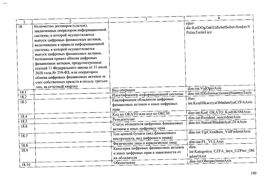 "О ПОРЯДКЕ И СРОКАХ СОСТАВЛЕНИЯ И ПРЕДСТАВЛЕНИЯ (ПРЕДОСТАВЛЕНИЯ) В БАНК РОССИИ ОТЧЕТОВ ОПЕРАТОРОВ ИНВЕСТИЦИОННЫХ ПЛАТФОРМ, ОТЧЕТНОСТИ ОПЕРАТОРОВ ФИНАНСОВЫХ ПЛАТФОРМ, ОПЕРАТОРОВ ИНФОРМАЦИОННЫХ СИСТЕМ, В КОТОРЫХ ОСУЩЕСТВЛЯЕТСЯ ВЫПУСК ЦИФРОВЫХ ФИНАНСОВЫХ АКТИВОВ, И ОПЕРАТОРОВ ОБМЕНА ЦИФРОВЫХ ФИНАНСОВЫХ АКТИВОВ, ФОРМЕ ОТЧЕТОВ ОПЕРАТОРОВ ИНВЕСТИЦИОННЫХ ПЛАТФОРМ И СОСТАВЕ ВКЛЮЧАЕМЫХ В НИХ СВЕДЕНИЙ, СОСТАВЕ И ФОРМАХ ОТЧЕТНОСТИ ОПЕРАТОРОВ ФИНАНСОВЫХ ПЛАТФОРМ, А ТАКЖЕ О ПОРЯДКЕ СООБЩЕНИЯ ОПЕРАТОРАМИ ИНВЕСТИЦИОННЫХ ПЛАТФОРМ, ОПЕРАТОРАМИ ФИНАНСОВЫХ ПЛАТФОРМ, ОПЕРАТОРАМИ ИНФОРМАЦИОННЫХ СИСТЕМ, В КОТОРЫХ ОСУЩЕСТВЛЯЕТСЯ ВЫПУСК ЦИФРОВЫХ ФИНАНСОВЫХ АКТИВОВ, ОПЕРАТОРАМИ ОБМЕНА ЦИФРОВЫХ ФИНАНСОВЫХ АКТИВОВ БАНКУ РОССИИ ИНФОРМАЦИИ О ЛИЦАХ, КОТОРЫМ ПОРУЧЕНО ПРОВЕДЕНИЕ ИДЕНТИФИКАЦИИ, УПРОЩЕННОЙ ИДЕНТИФИКАЦИИ, ОБНОВЛЕНИЕ ИНФОРМАЦИИ О КЛИЕНТАХ, ПРЕДСТАВИТЕЛЯХ КЛИЕНТОВ, ВЫГОДОПРЕОБРЕТАТЕЛЯХ И БЕНЕФИЦИАРНЫХ ВЛАДЕЛЬЦАХ"