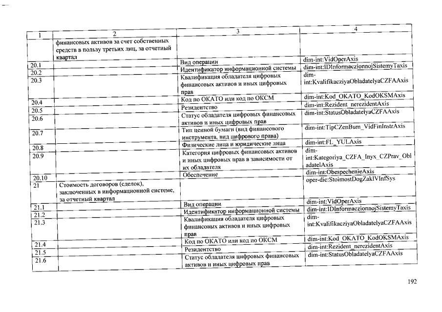 "О ПОРЯДКЕ И СРОКАХ СОСТАВЛЕНИЯ И ПРЕДСТАВЛЕНИЯ (ПРЕДОСТАВЛЕНИЯ) В БАНК РОССИИ ОТЧЕТОВ ОПЕРАТОРОВ ИНВЕСТИЦИОННЫХ ПЛАТФОРМ, ОТЧЕТНОСТИ ОПЕРАТОРОВ ФИНАНСОВЫХ ПЛАТФОРМ, ОПЕРАТОРОВ ИНФОРМАЦИОННЫХ СИСТЕМ, В КОТОРЫХ ОСУЩЕСТВЛЯЕТСЯ ВЫПУСК ЦИФРОВЫХ ФИНАНСОВЫХ АКТИВОВ, И ОПЕРАТОРОВ ОБМЕНА ЦИФРОВЫХ ФИНАНСОВЫХ АКТИВОВ, ФОРМЕ ОТЧЕТОВ ОПЕРАТОРОВ ИНВЕСТИЦИОННЫХ ПЛАТФОРМ И СОСТАВЕ ВКЛЮЧАЕМЫХ В НИХ СВЕДЕНИЙ, СОСТАВЕ И ФОРМАХ ОТЧЕТНОСТИ ОПЕРАТОРОВ ФИНАНСОВЫХ ПЛАТФОРМ, А ТАКЖЕ О ПОРЯДКЕ СООБЩЕНИЯ ОПЕРАТОРАМИ ИНВЕСТИЦИОННЫХ ПЛАТФОРМ, ОПЕРАТОРАМИ ФИНАНСОВЫХ ПЛАТФОРМ, ОПЕРАТОРАМИ ИНФОРМАЦИОННЫХ СИСТЕМ, В КОТОРЫХ ОСУЩЕСТВЛЯЕТСЯ ВЫПУСК ЦИФРОВЫХ ФИНАНСОВЫХ АКТИВОВ, ОПЕРАТОРАМИ ОБМЕНА ЦИФРОВЫХ ФИНАНСОВЫХ АКТИВОВ БАНКУ РОССИИ ИНФОРМАЦИИ О ЛИЦАХ, КОТОРЫМ ПОРУЧЕНО ПРОВЕДЕНИЕ ИДЕНТИФИКАЦИИ, УПРОЩЕННОЙ ИДЕНТИФИКАЦИИ, ОБНОВЛЕНИЕ ИНФОРМАЦИИ О КЛИЕНТАХ, ПРЕДСТАВИТЕЛЯХ КЛИЕНТОВ, ВЫГОДОПРЕОБРЕТАТЕЛЯХ И БЕНЕФИЦИАРНЫХ ВЛАДЕЛЬЦАХ"