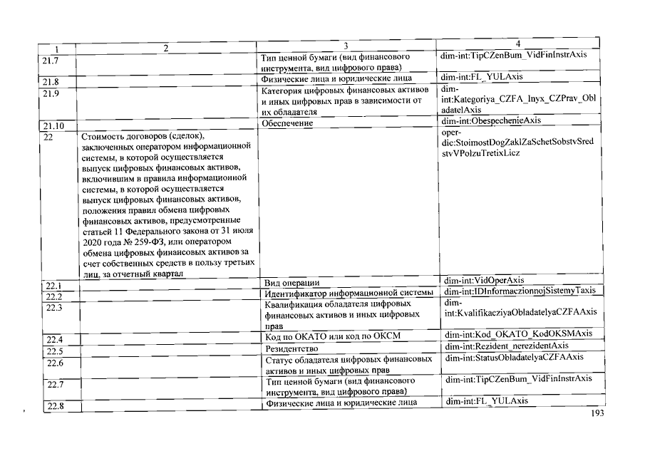 "О ПОРЯДКЕ И СРОКАХ СОСТАВЛЕНИЯ И ПРЕДСТАВЛЕНИЯ (ПРЕДОСТАВЛЕНИЯ) В БАНК РОССИИ ОТЧЕТОВ ОПЕРАТОРОВ ИНВЕСТИЦИОННЫХ ПЛАТФОРМ, ОТЧЕТНОСТИ ОПЕРАТОРОВ ФИНАНСОВЫХ ПЛАТФОРМ, ОПЕРАТОРОВ ИНФОРМАЦИОННЫХ СИСТЕМ, В КОТОРЫХ ОСУЩЕСТВЛЯЕТСЯ ВЫПУСК ЦИФРОВЫХ ФИНАНСОВЫХ АКТИВОВ, И ОПЕРАТОРОВ ОБМЕНА ЦИФРОВЫХ ФИНАНСОВЫХ АКТИВОВ, ФОРМЕ ОТЧЕТОВ ОПЕРАТОРОВ ИНВЕСТИЦИОННЫХ ПЛАТФОРМ И СОСТАВЕ ВКЛЮЧАЕМЫХ В НИХ СВЕДЕНИЙ, СОСТАВЕ И ФОРМАХ ОТЧЕТНОСТИ ОПЕРАТОРОВ ФИНАНСОВЫХ ПЛАТФОРМ, А ТАКЖЕ О ПОРЯДКЕ СООБЩЕНИЯ ОПЕРАТОРАМИ ИНВЕСТИЦИОННЫХ ПЛАТФОРМ, ОПЕРАТОРАМИ ФИНАНСОВЫХ ПЛАТФОРМ, ОПЕРАТОРАМИ ИНФОРМАЦИОННЫХ СИСТЕМ, В КОТОРЫХ ОСУЩЕСТВЛЯЕТСЯ ВЫПУСК ЦИФРОВЫХ ФИНАНСОВЫХ АКТИВОВ, ОПЕРАТОРАМИ ОБМЕНА ЦИФРОВЫХ ФИНАНСОВЫХ АКТИВОВ БАНКУ РОССИИ ИНФОРМАЦИИ О ЛИЦАХ, КОТОРЫМ ПОРУЧЕНО ПРОВЕДЕНИЕ ИДЕНТИФИКАЦИИ, УПРОЩЕННОЙ ИДЕНТИФИКАЦИИ, ОБНОВЛЕНИЕ ИНФОРМАЦИИ О КЛИЕНТАХ, ПРЕДСТАВИТЕЛЯХ КЛИЕНТОВ, ВЫГОДОПРЕОБРЕТАТЕЛЯХ И БЕНЕФИЦИАРНЫХ ВЛАДЕЛЬЦАХ"