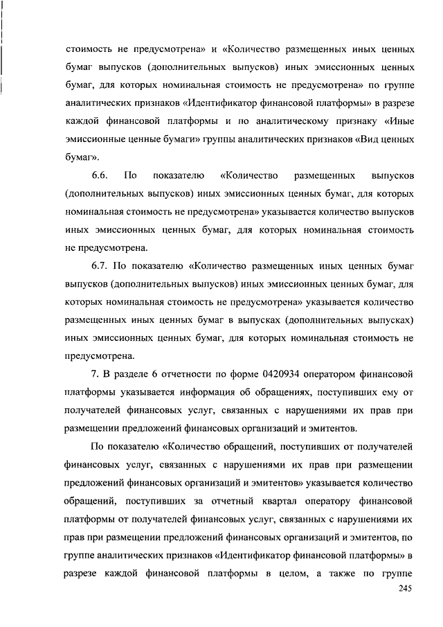 "О ПОРЯДКЕ И СРОКАХ СОСТАВЛЕНИЯ И ПРЕДСТАВЛЕНИЯ (ПРЕДОСТАВЛЕНИЯ) В БАНК РОССИИ ОТЧЕТОВ ОПЕРАТОРОВ ИНВЕСТИЦИОННЫХ ПЛАТФОРМ, ОТЧЕТНОСТИ ОПЕРАТОРОВ ФИНАНСОВЫХ ПЛАТФОРМ, ОПЕРАТОРОВ ИНФОРМАЦИОННЫХ СИСТЕМ, В КОТОРЫХ ОСУЩЕСТВЛЯЕТСЯ ВЫПУСК ЦИФРОВЫХ ФИНАНСОВЫХ АКТИВОВ, И ОПЕРАТОРОВ ОБМЕНА ЦИФРОВЫХ ФИНАНСОВЫХ АКТИВОВ, ФОРМЕ ОТЧЕТОВ ОПЕРАТОРОВ ИНВЕСТИЦИОННЫХ ПЛАТФОРМ И СОСТАВЕ ВКЛЮЧАЕМЫХ В НИХ СВЕДЕНИЙ, СОСТАВЕ И ФОРМАХ ОТЧЕТНОСТИ ОПЕРАТОРОВ ФИНАНСОВЫХ ПЛАТФОРМ, А ТАКЖЕ О ПОРЯДКЕ СООБЩЕНИЯ ОПЕРАТОРАМИ ИНВЕСТИЦИОННЫХ ПЛАТФОРМ, ОПЕРАТОРАМИ ФИНАНСОВЫХ ПЛАТФОРМ, ОПЕРАТОРАМИ ИНФОРМАЦИОННЫХ СИСТЕМ, В КОТОРЫХ ОСУЩЕСТВЛЯЕТСЯ ВЫПУСК ЦИФРОВЫХ ФИНАНСОВЫХ АКТИВОВ, ОПЕРАТОРАМИ ОБМЕНА ЦИФРОВЫХ ФИНАНСОВЫХ АКТИВОВ БАНКУ РОССИИ ИНФОРМАЦИИ О ЛИЦАХ, КОТОРЫМ ПОРУЧЕНО ПРОВЕДЕНИЕ ИДЕНТИФИКАЦИИ, УПРОЩЕННОЙ ИДЕНТИФИКАЦИИ, ОБНОВЛЕНИЕ ИНФОРМАЦИИ О КЛИЕНТАХ, ПРЕДСТАВИТЕЛЯХ КЛИЕНТОВ, ВЫГОДОПРЕОБРЕТАТЕЛЯХ И БЕНЕФИЦИАРНЫХ ВЛАДЕЛЬЦАХ"
