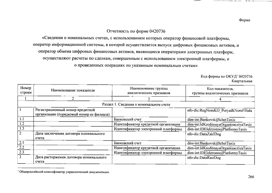 "О ПОРЯДКЕ И СРОКАХ СОСТАВЛЕНИЯ И ПРЕДСТАВЛЕНИЯ (ПРЕДОСТАВЛЕНИЯ) В БАНК РОССИИ ОТЧЕТОВ ОПЕРАТОРОВ ИНВЕСТИЦИОННЫХ ПЛАТФОРМ, ОТЧЕТНОСТИ ОПЕРАТОРОВ ФИНАНСОВЫХ ПЛАТФОРМ, ОПЕРАТОРОВ ИНФОРМАЦИОННЫХ СИСТЕМ, В КОТОРЫХ ОСУЩЕСТВЛЯЕТСЯ ВЫПУСК ЦИФРОВЫХ ФИНАНСОВЫХ АКТИВОВ, И ОПЕРАТОРОВ ОБМЕНА ЦИФРОВЫХ ФИНАНСОВЫХ АКТИВОВ, ФОРМЕ ОТЧЕТОВ ОПЕРАТОРОВ ИНВЕСТИЦИОННЫХ ПЛАТФОРМ И СОСТАВЕ ВКЛЮЧАЕМЫХ В НИХ СВЕДЕНИЙ, СОСТАВЕ И ФОРМАХ ОТЧЕТНОСТИ ОПЕРАТОРОВ ФИНАНСОВЫХ ПЛАТФОРМ, А ТАКЖЕ О ПОРЯДКЕ СООБЩЕНИЯ ОПЕРАТОРАМИ ИНВЕСТИЦИОННЫХ ПЛАТФОРМ, ОПЕРАТОРАМИ ФИНАНСОВЫХ ПЛАТФОРМ, ОПЕРАТОРАМИ ИНФОРМАЦИОННЫХ СИСТЕМ, В КОТОРЫХ ОСУЩЕСТВЛЯЕТСЯ ВЫПУСК ЦИФРОВЫХ ФИНАНСОВЫХ АКТИВОВ, ОПЕРАТОРАМИ ОБМЕНА ЦИФРОВЫХ ФИНАНСОВЫХ АКТИВОВ БАНКУ РОССИИ ИНФОРМАЦИИ О ЛИЦАХ, КОТОРЫМ ПОРУЧЕНО ПРОВЕДЕНИЕ ИДЕНТИФИКАЦИИ, УПРОЩЕННОЙ ИДЕНТИФИКАЦИИ, ОБНОВЛЕНИЕ ИНФОРМАЦИИ О КЛИЕНТАХ, ПРЕДСТАВИТЕЛЯХ КЛИЕНТОВ, ВЫГОДОПРЕОБРЕТАТЕЛЯХ И БЕНЕФИЦИАРНЫХ ВЛАДЕЛЬЦАХ"