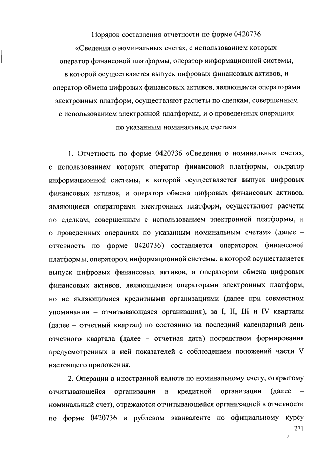 "О ПОРЯДКЕ И СРОКАХ СОСТАВЛЕНИЯ И ПРЕДСТАВЛЕНИЯ (ПРЕДОСТАВЛЕНИЯ) В БАНК РОССИИ ОТЧЕТОВ ОПЕРАТОРОВ ИНВЕСТИЦИОННЫХ ПЛАТФОРМ, ОТЧЕТНОСТИ ОПЕРАТОРОВ ФИНАНСОВЫХ ПЛАТФОРМ, ОПЕРАТОРОВ ИНФОРМАЦИОННЫХ СИСТЕМ, В КОТОРЫХ ОСУЩЕСТВЛЯЕТСЯ ВЫПУСК ЦИФРОВЫХ ФИНАНСОВЫХ АКТИВОВ, И ОПЕРАТОРОВ ОБМЕНА ЦИФРОВЫХ ФИНАНСОВЫХ АКТИВОВ, ФОРМЕ ОТЧЕТОВ ОПЕРАТОРОВ ИНВЕСТИЦИОННЫХ ПЛАТФОРМ И СОСТАВЕ ВКЛЮЧАЕМЫХ В НИХ СВЕДЕНИЙ, СОСТАВЕ И ФОРМАХ ОТЧЕТНОСТИ ОПЕРАТОРОВ ФИНАНСОВЫХ ПЛАТФОРМ, А ТАКЖЕ О ПОРЯДКЕ СООБЩЕНИЯ ОПЕРАТОРАМИ ИНВЕСТИЦИОННЫХ ПЛАТФОРМ, ОПЕРАТОРАМИ ФИНАНСОВЫХ ПЛАТФОРМ, ОПЕРАТОРАМИ ИНФОРМАЦИОННЫХ СИСТЕМ, В КОТОРЫХ ОСУЩЕСТВЛЯЕТСЯ ВЫПУСК ЦИФРОВЫХ ФИНАНСОВЫХ АКТИВОВ, ОПЕРАТОРАМИ ОБМЕНА ЦИФРОВЫХ ФИНАНСОВЫХ АКТИВОВ БАНКУ РОССИИ ИНФОРМАЦИИ О ЛИЦАХ, КОТОРЫМ ПОРУЧЕНО ПРОВЕДЕНИЕ ИДЕНТИФИКАЦИИ, УПРОЩЕННОЙ ИДЕНТИФИКАЦИИ, ОБНОВЛЕНИЕ ИНФОРМАЦИИ О КЛИЕНТАХ, ПРЕДСТАВИТЕЛЯХ КЛИЕНТОВ, ВЫГОДОПРЕОБРЕТАТЕЛЯХ И БЕНЕФИЦИАРНЫХ ВЛАДЕЛЬЦАХ"
