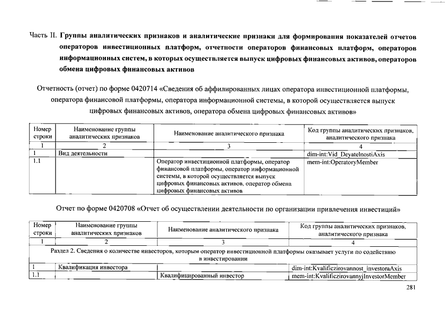 "О ПОРЯДКЕ И СРОКАХ СОСТАВЛЕНИЯ И ПРЕДСТАВЛЕНИЯ (ПРЕДОСТАВЛЕНИЯ) В БАНК РОССИИ ОТЧЕТОВ ОПЕРАТОРОВ ИНВЕСТИЦИОННЫХ ПЛАТФОРМ, ОТЧЕТНОСТИ ОПЕРАТОРОВ ФИНАНСОВЫХ ПЛАТФОРМ, ОПЕРАТОРОВ ИНФОРМАЦИОННЫХ СИСТЕМ, В КОТОРЫХ ОСУЩЕСТВЛЯЕТСЯ ВЫПУСК ЦИФРОВЫХ ФИНАНСОВЫХ АКТИВОВ, И ОПЕРАТОРОВ ОБМЕНА ЦИФРОВЫХ ФИНАНСОВЫХ АКТИВОВ, ФОРМЕ ОТЧЕТОВ ОПЕРАТОРОВ ИНВЕСТИЦИОННЫХ ПЛАТФОРМ И СОСТАВЕ ВКЛЮЧАЕМЫХ В НИХ СВЕДЕНИЙ, СОСТАВЕ И ФОРМАХ ОТЧЕТНОСТИ ОПЕРАТОРОВ ФИНАНСОВЫХ ПЛАТФОРМ, А ТАКЖЕ О ПОРЯДКЕ СООБЩЕНИЯ ОПЕРАТОРАМИ ИНВЕСТИЦИОННЫХ ПЛАТФОРМ, ОПЕРАТОРАМИ ФИНАНСОВЫХ ПЛАТФОРМ, ОПЕРАТОРАМИ ИНФОРМАЦИОННЫХ СИСТЕМ, В КОТОРЫХ ОСУЩЕСТВЛЯЕТСЯ ВЫПУСК ЦИФРОВЫХ ФИНАНСОВЫХ АКТИВОВ, ОПЕРАТОРАМИ ОБМЕНА ЦИФРОВЫХ ФИНАНСОВЫХ АКТИВОВ БАНКУ РОССИИ ИНФОРМАЦИИ О ЛИЦАХ, КОТОРЫМ ПОРУЧЕНО ПРОВЕДЕНИЕ ИДЕНТИФИКАЦИИ, УПРОЩЕННОЙ ИДЕНТИФИКАЦИИ, ОБНОВЛЕНИЕ ИНФОРМАЦИИ О КЛИЕНТАХ, ПРЕДСТАВИТЕЛЯХ КЛИЕНТОВ, ВЫГОДОПРЕОБРЕТАТЕЛЯХ И БЕНЕФИЦИАРНЫХ ВЛАДЕЛЬЦАХ"