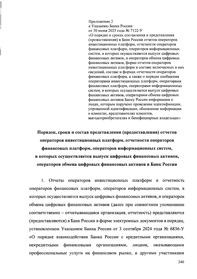 УКАЗАНИЕ ЦБ РФ от 30.06.2025 N 7122-У