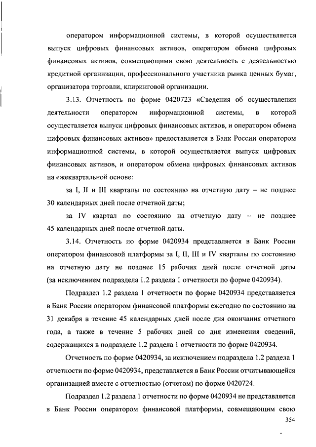 "О ПОРЯДКЕ И СРОКАХ СОСТАВЛЕНИЯ И ПРЕДСТАВЛЕНИЯ (ПРЕДОСТАВЛЕНИЯ) В БАНК РОССИИ ОТЧЕТОВ ОПЕРАТОРОВ ИНВЕСТИЦИОННЫХ ПЛАТФОРМ, ОТЧЕТНОСТИ ОПЕРАТОРОВ ФИНАНСОВЫХ ПЛАТФОРМ, ОПЕРАТОРОВ ИНФОРМАЦИОННЫХ СИСТЕМ, В КОТОРЫХ ОСУЩЕСТВЛЯЕТСЯ ВЫПУСК ЦИФРОВЫХ ФИНАНСОВЫХ АКТИВОВ, И ОПЕРАТОРОВ ОБМЕНА ЦИФРОВЫХ ФИНАНСОВЫХ АКТИВОВ, ФОРМЕ ОТЧЕТОВ ОПЕРАТОРОВ ИНВЕСТИЦИОННЫХ ПЛАТФОРМ И СОСТАВЕ ВКЛЮЧАЕМЫХ В НИХ СВЕДЕНИЙ, СОСТАВЕ И ФОРМАХ ОТЧЕТНОСТИ ОПЕРАТОРОВ ФИНАНСОВЫХ ПЛАТФОРМ, А ТАКЖЕ О ПОРЯДКЕ СООБЩЕНИЯ ОПЕРАТОРАМИ ИНВЕСТИЦИОННЫХ ПЛАТФОРМ, ОПЕРАТОРАМИ ФИНАНСОВЫХ ПЛАТФОРМ, ОПЕРАТОРАМИ ИНФОРМАЦИОННЫХ СИСТЕМ, В КОТОРЫХ ОСУЩЕСТВЛЯЕТСЯ ВЫПУСК ЦИФРОВЫХ ФИНАНСОВЫХ АКТИВОВ, ОПЕРАТОРАМИ ОБМЕНА ЦИФРОВЫХ ФИНАНСОВЫХ АКТИВОВ БАНКУ РОССИИ ИНФОРМАЦИИ О ЛИЦАХ, КОТОРЫМ ПОРУЧЕНО ПРОВЕДЕНИЕ ИДЕНТИФИКАЦИИ, УПРОЩЕННОЙ ИДЕНТИФИКАЦИИ, ОБНОВЛЕНИЕ ИНФОРМАЦИИ О КЛИЕНТАХ, ПРЕДСТАВИТЕЛЯХ КЛИЕНТОВ, ВЫГОДОПРЕОБРЕТАТЕЛЯХ И БЕНЕФИЦИАРНЫХ ВЛАДЕЛЬЦАХ"