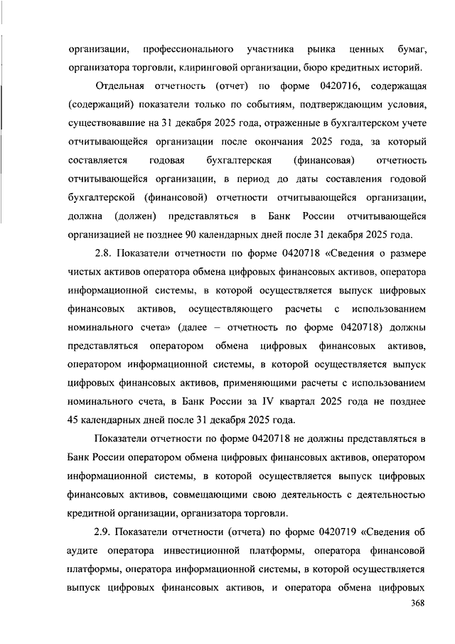"О ПОРЯДКЕ И СРОКАХ СОСТАВЛЕНИЯ И ПРЕДСТАВЛЕНИЯ (ПРЕДОСТАВЛЕНИЯ) В БАНК РОССИИ ОТЧЕТОВ ОПЕРАТОРОВ ИНВЕСТИЦИОННЫХ ПЛАТФОРМ, ОТЧЕТНОСТИ ОПЕРАТОРОВ ФИНАНСОВЫХ ПЛАТФОРМ, ОПЕРАТОРОВ ИНФОРМАЦИОННЫХ СИСТЕМ, В КОТОРЫХ ОСУЩЕСТВЛЯЕТСЯ ВЫПУСК ЦИФРОВЫХ ФИНАНСОВЫХ АКТИВОВ, И ОПЕРАТОРОВ ОБМЕНА ЦИФРОВЫХ ФИНАНСОВЫХ АКТИВОВ, ФОРМЕ ОТЧЕТОВ ОПЕРАТОРОВ ИНВЕСТИЦИОННЫХ ПЛАТФОРМ И СОСТАВЕ ВКЛЮЧАЕМЫХ В НИХ СВЕДЕНИЙ, СОСТАВЕ И ФОРМАХ ОТЧЕТНОСТИ ОПЕРАТОРОВ ФИНАНСОВЫХ ПЛАТФОРМ, А ТАКЖЕ О ПОРЯДКЕ СООБЩЕНИЯ ОПЕРАТОРАМИ ИНВЕСТИЦИОННЫХ ПЛАТФОРМ, ОПЕРАТОРАМИ ФИНАНСОВЫХ ПЛАТФОРМ, ОПЕРАТОРАМИ ИНФОРМАЦИОННЫХ СИСТЕМ, В КОТОРЫХ ОСУЩЕСТВЛЯЕТСЯ ВЫПУСК ЦИФРОВЫХ ФИНАНСОВЫХ АКТИВОВ, ОПЕРАТОРАМИ ОБМЕНА ЦИФРОВЫХ ФИНАНСОВЫХ АКТИВОВ БАНКУ РОССИИ ИНФОРМАЦИИ О ЛИЦАХ, КОТОРЫМ ПОРУЧЕНО ПРОВЕДЕНИЕ ИДЕНТИФИКАЦИИ, УПРОЩЕННОЙ ИДЕНТИФИКАЦИИ, ОБНОВЛЕНИЕ ИНФОРМАЦИИ О КЛИЕНТАХ, ПРЕДСТАВИТЕЛЯХ КЛИЕНТОВ, ВЫГОДОПРЕОБРЕТАТЕЛЯХ И БЕНЕФИЦИАРНЫХ ВЛАДЕЛЬЦАХ"