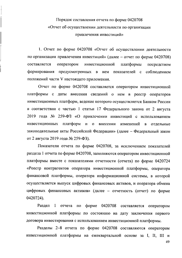 "О ПОРЯДКЕ И СРОКАХ СОСТАВЛЕНИЯ И ПРЕДСТАВЛЕНИЯ (ПРЕДОСТАВЛЕНИЯ) В БАНК РОССИИ ОТЧЕТОВ ОПЕРАТОРОВ ИНВЕСТИЦИОННЫХ ПЛАТФОРМ, ОТЧЕТНОСТИ ОПЕРАТОРОВ ФИНАНСОВЫХ ПЛАТФОРМ, ОПЕРАТОРОВ ИНФОРМАЦИОННЫХ СИСТЕМ, В КОТОРЫХ ОСУЩЕСТВЛЯЕТСЯ ВЫПУСК ЦИФРОВЫХ ФИНАНСОВЫХ АКТИВОВ, И ОПЕРАТОРОВ ОБМЕНА ЦИФРОВЫХ ФИНАНСОВЫХ АКТИВОВ, ФОРМЕ ОТЧЕТОВ ОПЕРАТОРОВ ИНВЕСТИЦИОННЫХ ПЛАТФОРМ И СОСТАВЕ ВКЛЮЧАЕМЫХ В НИХ СВЕДЕНИЙ, СОСТАВЕ И ФОРМАХ ОТЧЕТНОСТИ ОПЕРАТОРОВ ФИНАНСОВЫХ ПЛАТФОРМ, А ТАКЖЕ О ПОРЯДКЕ СООБЩЕНИЯ ОПЕРАТОРАМИ ИНВЕСТИЦИОННЫХ ПЛАТФОРМ, ОПЕРАТОРАМИ ФИНАНСОВЫХ ПЛАТФОРМ, ОПЕРАТОРАМИ ИНФОРМАЦИОННЫХ СИСТЕМ, В КОТОРЫХ ОСУЩЕСТВЛЯЕТСЯ ВЫПУСК ЦИФРОВЫХ ФИНАНСОВЫХ АКТИВОВ, ОПЕРАТОРАМИ ОБМЕНА ЦИФРОВЫХ ФИНАНСОВЫХ АКТИВОВ БАНКУ РОССИИ ИНФОРМАЦИИ О ЛИЦАХ, КОТОРЫМ ПОРУЧЕНО ПРОВЕДЕНИЕ ИДЕНТИФИКАЦИИ, УПРОЩЕННОЙ ИДЕНТИФИКАЦИИ, ОБНОВЛЕНИЕ ИНФОРМАЦИИ О КЛИЕНТАХ, ПРЕДСТАВИТЕЛЯХ КЛИЕНТОВ, ВЫГОДОПРЕОБРЕТАТЕЛЯХ И БЕНЕФИЦИАРНЫХ ВЛАДЕЛЬЦАХ"