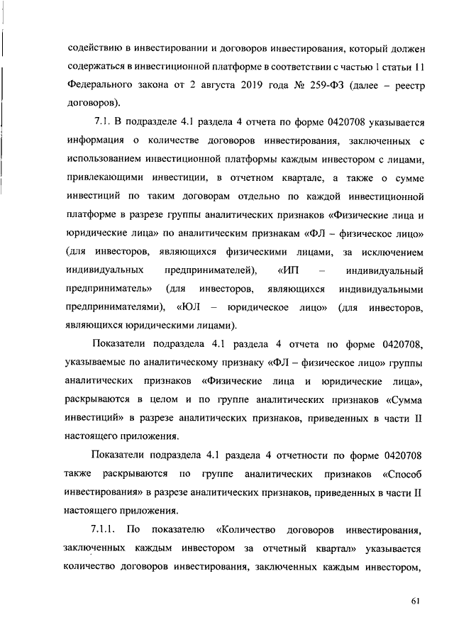 "О ПОРЯДКЕ И СРОКАХ СОСТАВЛЕНИЯ И ПРЕДСТАВЛЕНИЯ (ПРЕДОСТАВЛЕНИЯ) В БАНК РОССИИ ОТЧЕТОВ ОПЕРАТОРОВ ИНВЕСТИЦИОННЫХ ПЛАТФОРМ, ОТЧЕТНОСТИ ОПЕРАТОРОВ ФИНАНСОВЫХ ПЛАТФОРМ, ОПЕРАТОРОВ ИНФОРМАЦИОННЫХ СИСТЕМ, В КОТОРЫХ ОСУЩЕСТВЛЯЕТСЯ ВЫПУСК ЦИФРОВЫХ ФИНАНСОВЫХ АКТИВОВ, И ОПЕРАТОРОВ ОБМЕНА ЦИФРОВЫХ ФИНАНСОВЫХ АКТИВОВ, ФОРМЕ ОТЧЕТОВ ОПЕРАТОРОВ ИНВЕСТИЦИОННЫХ ПЛАТФОРМ И СОСТАВЕ ВКЛЮЧАЕМЫХ В НИХ СВЕДЕНИЙ, СОСТАВЕ И ФОРМАХ ОТЧЕТНОСТИ ОПЕРАТОРОВ ФИНАНСОВЫХ ПЛАТФОРМ, А ТАКЖЕ О ПОРЯДКЕ СООБЩЕНИЯ ОПЕРАТОРАМИ ИНВЕСТИЦИОННЫХ ПЛАТФОРМ, ОПЕРАТОРАМИ ФИНАНСОВЫХ ПЛАТФОРМ, ОПЕРАТОРАМИ ИНФОРМАЦИОННЫХ СИСТЕМ, В КОТОРЫХ ОСУЩЕСТВЛЯЕТСЯ ВЫПУСК ЦИФРОВЫХ ФИНАНСОВЫХ АКТИВОВ, ОПЕРАТОРАМИ ОБМЕНА ЦИФРОВЫХ ФИНАНСОВЫХ АКТИВОВ БАНКУ РОССИИ ИНФОРМАЦИИ О ЛИЦАХ, КОТОРЫМ ПОРУЧЕНО ПРОВЕДЕНИЕ ИДЕНТИФИКАЦИИ, УПРОЩЕННОЙ ИДЕНТИФИКАЦИИ, ОБНОВЛЕНИЕ ИНФОРМАЦИИ О КЛИЕНТАХ, ПРЕДСТАВИТЕЛЯХ КЛИЕНТОВ, ВЫГОДОПРЕОБРЕТАТЕЛЯХ И БЕНЕФИЦИАРНЫХ ВЛАДЕЛЬЦАХ"
