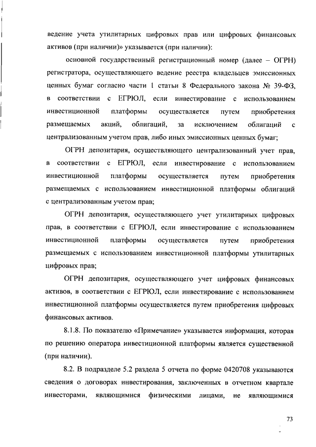"О ПОРЯДКЕ И СРОКАХ СОСТАВЛЕНИЯ И ПРЕДСТАВЛЕНИЯ (ПРЕДОСТАВЛЕНИЯ) В БАНК РОССИИ ОТЧЕТОВ ОПЕРАТОРОВ ИНВЕСТИЦИОННЫХ ПЛАТФОРМ, ОТЧЕТНОСТИ ОПЕРАТОРОВ ФИНАНСОВЫХ ПЛАТФОРМ, ОПЕРАТОРОВ ИНФОРМАЦИОННЫХ СИСТЕМ, В КОТОРЫХ ОСУЩЕСТВЛЯЕТСЯ ВЫПУСК ЦИФРОВЫХ ФИНАНСОВЫХ АКТИВОВ, И ОПЕРАТОРОВ ОБМЕНА ЦИФРОВЫХ ФИНАНСОВЫХ АКТИВОВ, ФОРМЕ ОТЧЕТОВ ОПЕРАТОРОВ ИНВЕСТИЦИОННЫХ ПЛАТФОРМ И СОСТАВЕ ВКЛЮЧАЕМЫХ В НИХ СВЕДЕНИЙ, СОСТАВЕ И ФОРМАХ ОТЧЕТНОСТИ ОПЕРАТОРОВ ФИНАНСОВЫХ ПЛАТФОРМ, А ТАКЖЕ О ПОРЯДКЕ СООБЩЕНИЯ ОПЕРАТОРАМИ ИНВЕСТИЦИОННЫХ ПЛАТФОРМ, ОПЕРАТОРАМИ ФИНАНСОВЫХ ПЛАТФОРМ, ОПЕРАТОРАМИ ИНФОРМАЦИОННЫХ СИСТЕМ, В КОТОРЫХ ОСУЩЕСТВЛЯЕТСЯ ВЫПУСК ЦИФРОВЫХ ФИНАНСОВЫХ АКТИВОВ, ОПЕРАТОРАМИ ОБМЕНА ЦИФРОВЫХ ФИНАНСОВЫХ АКТИВОВ БАНКУ РОССИИ ИНФОРМАЦИИ О ЛИЦАХ, КОТОРЫМ ПОРУЧЕНО ПРОВЕДЕНИЕ ИДЕНТИФИКАЦИИ, УПРОЩЕННОЙ ИДЕНТИФИКАЦИИ, ОБНОВЛЕНИЕ ИНФОРМАЦИИ О КЛИЕНТАХ, ПРЕДСТАВИТЕЛЯХ КЛИЕНТОВ, ВЫГОДОПРЕОБРЕТАТЕЛЯХ И БЕНЕФИЦИАРНЫХ ВЛАДЕЛЬЦАХ"