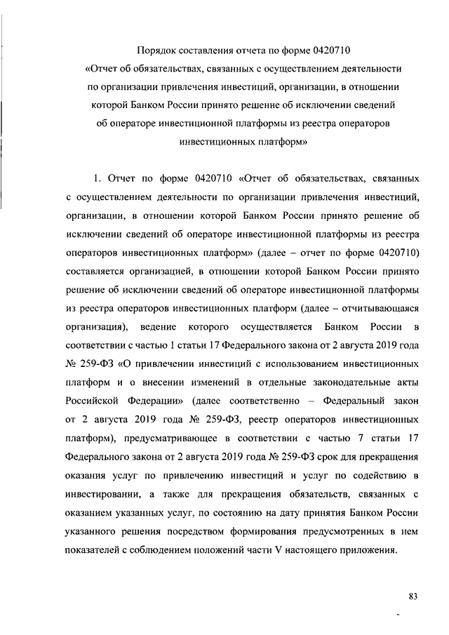"О ПОРЯДКЕ И СРОКАХ СОСТАВЛЕНИЯ И ПРЕДСТАВЛЕНИЯ (ПРЕДОСТАВЛЕНИЯ) В БАНК РОССИИ ОТЧЕТОВ ОПЕРАТОРОВ ИНВЕСТИЦИОННЫХ ПЛАТФОРМ, ОТЧЕТНОСТИ ОПЕРАТОРОВ ФИНАНСОВЫХ ПЛАТФОРМ, ОПЕРАТОРОВ ИНФОРМАЦИОННЫХ СИСТЕМ, В КОТОРЫХ ОСУЩЕСТВЛЯЕТСЯ ВЫПУСК ЦИФРОВЫХ ФИНАНСОВЫХ АКТИВОВ, И ОПЕРАТОРОВ ОБМЕНА ЦИФРОВЫХ ФИНАНСОВЫХ АКТИВОВ, ФОРМЕ ОТЧЕТОВ ОПЕРАТОРОВ ИНВЕСТИЦИОННЫХ ПЛАТФОРМ И СОСТАВЕ ВКЛЮЧАЕМЫХ В НИХ СВЕДЕНИЙ, СОСТАВЕ И ФОРМАХ ОТЧЕТНОСТИ ОПЕРАТОРОВ ФИНАНСОВЫХ ПЛАТФОРМ, А ТАКЖЕ О ПОРЯДКЕ СООБЩЕНИЯ ОПЕРАТОРАМИ ИНВЕСТИЦИОННЫХ ПЛАТФОРМ, ОПЕРАТОРАМИ ФИНАНСОВЫХ ПЛАТФОРМ, ОПЕРАТОРАМИ ИНФОРМАЦИОННЫХ СИСТЕМ, В КОТОРЫХ ОСУЩЕСТВЛЯЕТСЯ ВЫПУСК ЦИФРОВЫХ ФИНАНСОВЫХ АКТИВОВ, ОПЕРАТОРАМИ ОБМЕНА ЦИФРОВЫХ ФИНАНСОВЫХ АКТИВОВ БАНКУ РОССИИ ИНФОРМАЦИИ О ЛИЦАХ, КОТОРЫМ ПОРУЧЕНО ПРОВЕДЕНИЕ ИДЕНТИФИКАЦИИ, УПРОЩЕННОЙ ИДЕНТИФИКАЦИИ, ОБНОВЛЕНИЕ ИНФОРМАЦИИ О КЛИЕНТАХ, ПРЕДСТАВИТЕЛЯХ КЛИЕНТОВ, ВЫГОДОПРЕОБРЕТАТЕЛЯХ И БЕНЕФИЦИАРНЫХ ВЛАДЕЛЬЦАХ"