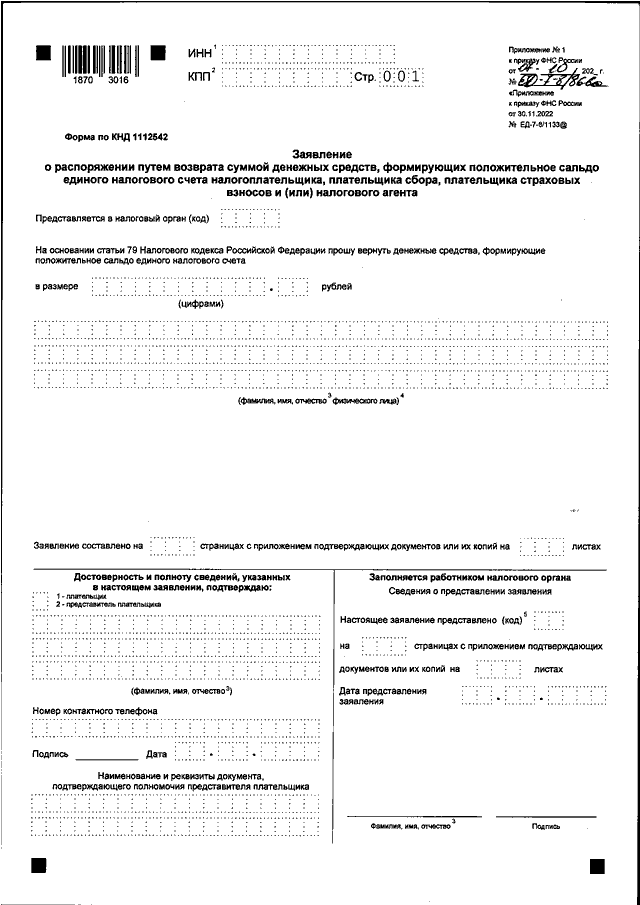"О ВНЕСЕНИИ ИЗМЕНЕНИЙ В ПРИКАЗ ФНС РОССИИ ОТ 30.11.2022 N ЕД-7-8/1133@"