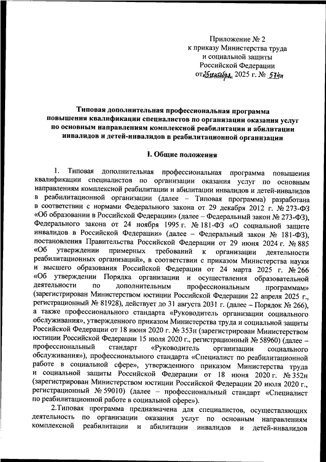 "ОБ УТВЕРЖДЕНИИ ТИПОВЫХ ДОПОЛНИТЕЛЬНЫХ ПРОФЕССИОНАЛЬНЫХ ПРОГРАММ В ОБЛАСТИ КОМПЛЕКСНОЙ РЕАБИЛИТАЦИИ И АБИЛИТАЦИИ ИНВАЛИДОВ"