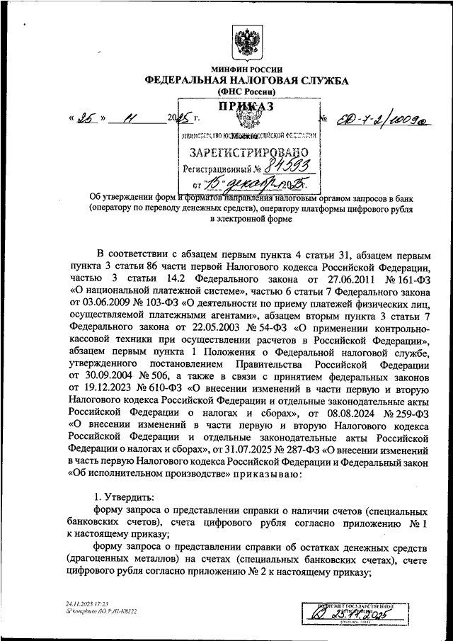 ПРИКАЗ ФНС РФ от 25.11.2025 N ЕД-7-2/1009@