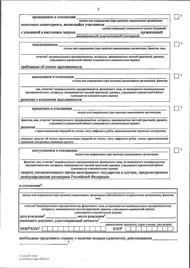 "ОБ УТВЕРЖДЕНИИ ФОРМ И ФОРМАТОВ НАПРАВЛЕНИЯ НАЛОГОВЫМ ОРГАНОМ ЗАПРОСОВ В БАНК (ОПЕРАТОРУ ПО ПЕРЕВОДУ ДЕНЕЖНЫХ СРЕДСТВ), ОПЕРАТОРУ ПЛАТФОРМЫ ЦИФРОВОГО РУБЛЯ В ЭЛЕКТРОННОЙ ФОРМЕ"