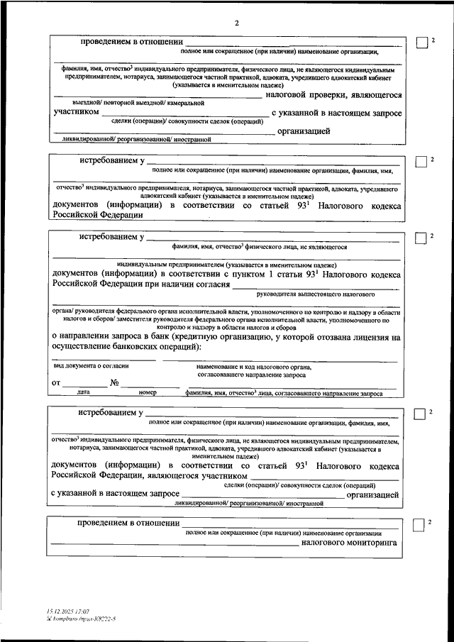 "ОБ УТВЕРЖДЕНИИ ФОРМ И ФОРМАТОВ НАПРАВЛЕНИЯ НАЛОГОВЫМ ОРГАНОМ ЗАПРОСОВ В БАНК (ОПЕРАТОРУ ПО ПЕРЕВОДУ ДЕНЕЖНЫХ СРЕДСТВ), ОПЕРАТОРУ ПЛАТФОРМЫ ЦИФРОВОГО РУБЛЯ В ЭЛЕКТРОННОЙ ФОРМЕ"