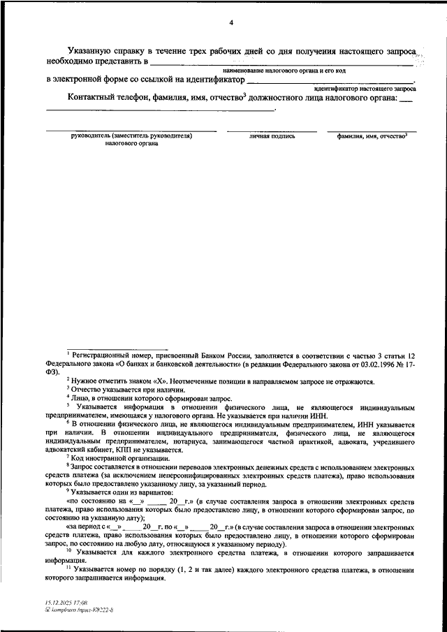 "ОБ УТВЕРЖДЕНИИ ФОРМ И ФОРМАТОВ НАПРАВЛЕНИЯ НАЛОГОВЫМ ОРГАНОМ ЗАПРОСОВ В БАНК (ОПЕРАТОРУ ПО ПЕРЕВОДУ ДЕНЕЖНЫХ СРЕДСТВ), ОПЕРАТОРУ ПЛАТФОРМЫ ЦИФРОВОГО РУБЛЯ В ЭЛЕКТРОННОЙ ФОРМЕ"