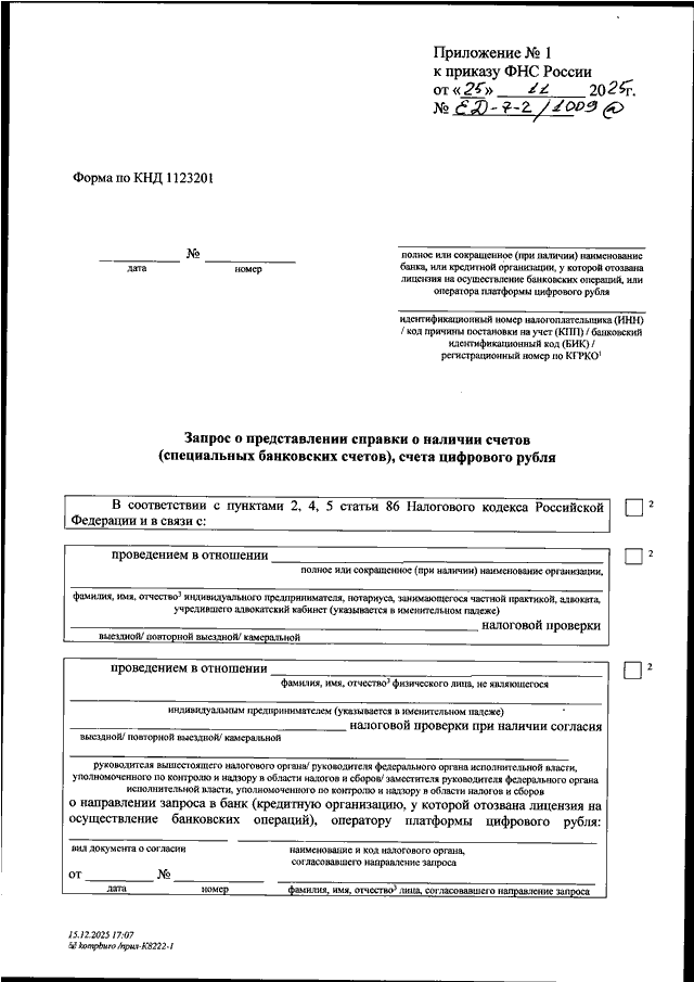 ПРИКАЗ ФНС РФ от 25.11.2025 N ЕД-7-2/1009@
