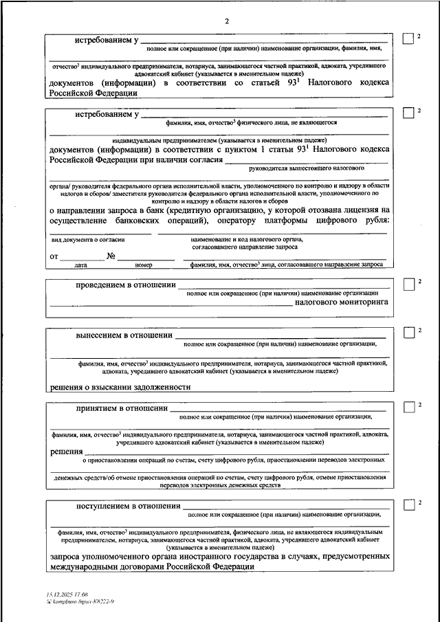 "ОБ УТВЕРЖДЕНИИ ФОРМ И ФОРМАТОВ НАПРАВЛЕНИЯ НАЛОГОВЫМ ОРГАНОМ ЗАПРОСОВ В БАНК (ОПЕРАТОРУ ПО ПЕРЕВОДУ ДЕНЕЖНЫХ СРЕДСТВ), ОПЕРАТОРУ ПЛАТФОРМЫ ЦИФРОВОГО РУБЛЯ В ЭЛЕКТРОННОЙ ФОРМЕ"